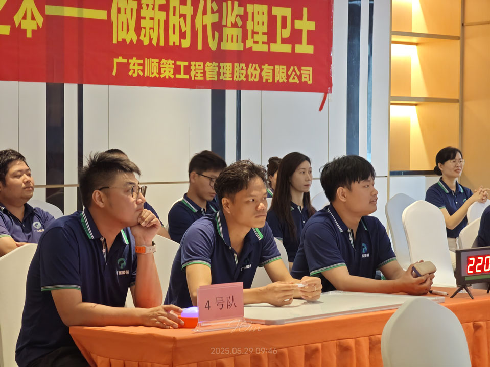 2025年5月29日,佛山市顺德拔萃科技大厦4楼会议厅迎来了第一届ky体育网页入口登录杯监理安全质量知识抢答竞赛。本次竞赛以“强质量之基,固安全之本——做新时代监理卫士”为主题,旨在提升全员安全质量意识,强化监理法规及标准规范的掌握能力,同时营造“比学赶超”的学习氛围,促进各项目监理机构间的经验交流,并选拔优秀人才为后续项目安全管理、知识比赛储备骨干力量。
